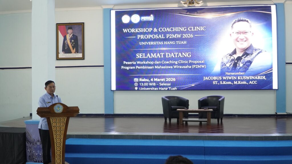 VIP- Surabaya, 04 Maret 2026 — Unit Kegiatan Mahasiswa (UKM) Kewirausahaan Universitas Hang Tuah menggelar Workshop & Coaching Clinic Proposal Program Pembinaan Mahasiswa Wirausaha (P2MW) 2026 pada Rabu (04/03/2026) bertempat di Gedung Graha Samudera. Kegiatan ini dimulai pukul 13.00 WIB dan diikuti oleh mahasiswa dari berbagai program studi yang antusias mempersiapkan proposal bisnis terbaiknya.