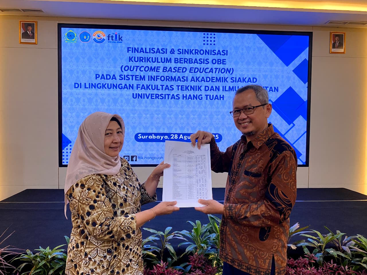 VIP-Surabaya – Fakultas Teknik dan Ilmu Kelautan (FTIK) Universitas Hang Tuah terus menunjukkan komitmennya dalam meningkatkan mutu pendidikan tinggi melalui penerapan kurikulum berbasis Outcome Based Education (OBE). Dalam upaya mewujudkan visi sebagai fakultas unggulan di bidang ipteks kelautan dan kemaritiman, FTIK menyelenggarakan kegiatan Finalisasi dan Sinkronisasi Kurikulum OBE pada Sistem Informasi Akademik (SIAKAD).