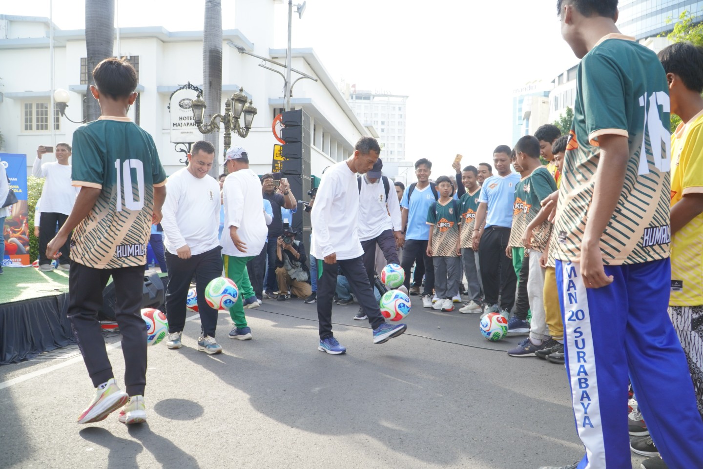 Jatim Newsroom – Kick Off Piala Dunia 2026 dengan tema Bola Gembira resmi digelar di Jalan Tunjungan, tepatnya di depan Hotel Majapahit Surabaya, Minggu (1/2/2026). Kegiatan ini menandai dimulainya siaran FIFA World Cup 2026 oleh TVRI sebagai official broadcast di Indonesia.