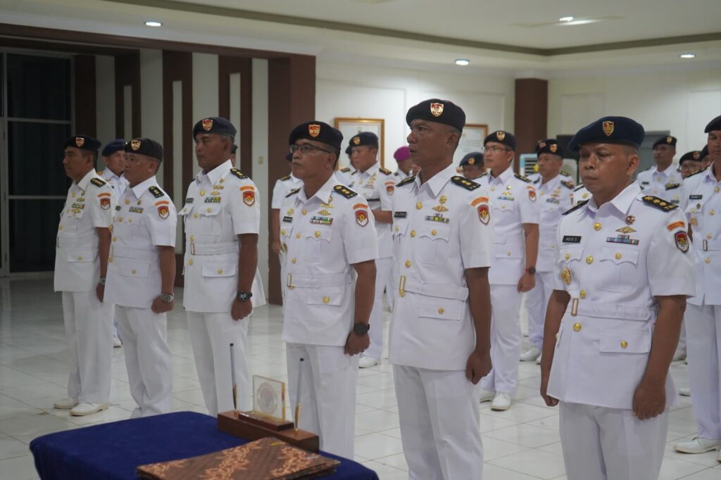 TNI AL. Kodaeral XI. Komandan Kodaeral XI, Laksamana Muda TNI Monang Hatorangan Sitompul, S.A.P. pimpin Upacara Pengukuhan, Serah Terima dan Penyerahan Jabatan Pejabat dan Kasatker Kodaeral XI. Kegiatan berlangsung di Ruang Rapat Markas Kodaeral XI, Kab. Merauke, Prov. Papua Selatan. Selasa, 06 Januari 2026
