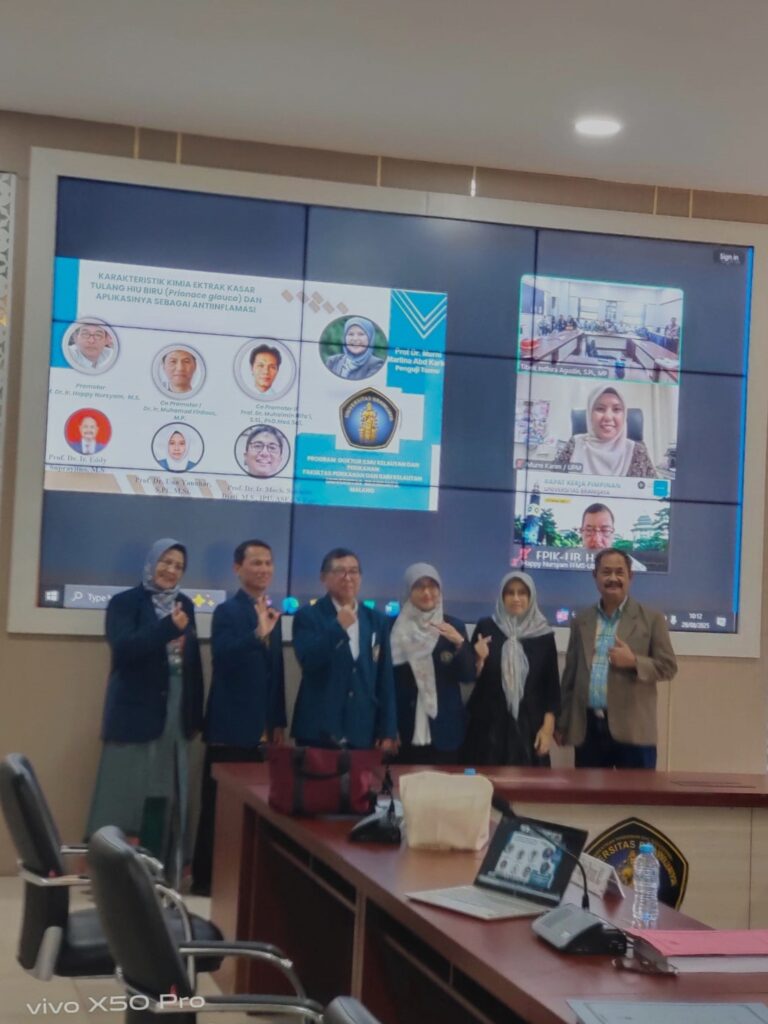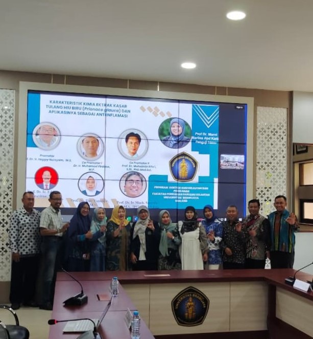Didampingi tim promotor yang terdiri dari Prof. Dr. Ir. Happy Nursyam, M.S., Dr. Ir. Muhamad Firdaus, M.P., dan Prof. Dr. Muhaimin Rifa’i, S.Si., Ph.D., Med.Sci., penelitian tersebut melahirkan sejumlah publikasi ilmiah bereputasi. Antara lain artikel di jurnal internasional (Q3) Egyptian Journal of Aquatic Biology & Fisheries, prosiding terindeks Scopus (Q3) pada ICOMMES (IoP Conference Series), serta dua artikel lain yang masih dalam proses submit.
