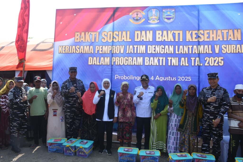 Probolinggo, Komandan Pangkalan Utama TNI AL (Danlantamal) V Laksma TNI Dr. Arya Delano, S.E., M.Pd., M.Han., mendampingi Gubernur Jawa Timur Hj. Dr. (HC) Khofifah Indar Parawansa, M.Si., memimpin Upacara Pembukaan Karya Bakti TNI AL kerja sama antara Pemerintah Provinsi Jawa Timur bersama dengan Pangkalan Utama TNI Angkatan Laut (Lantamal) V berupa Renovasi Rumah Tidak Layak Huni untuk menjadi Rumah Tinggal Layak Huni (Rutilahu) di halaman Kantor Bupati Probolinggo, JI. Raya Panglima Sudirman No. 134, Patokan, Kec. Kraksaan, Kabupaten Probolinggo. Senin (04/08/2025)